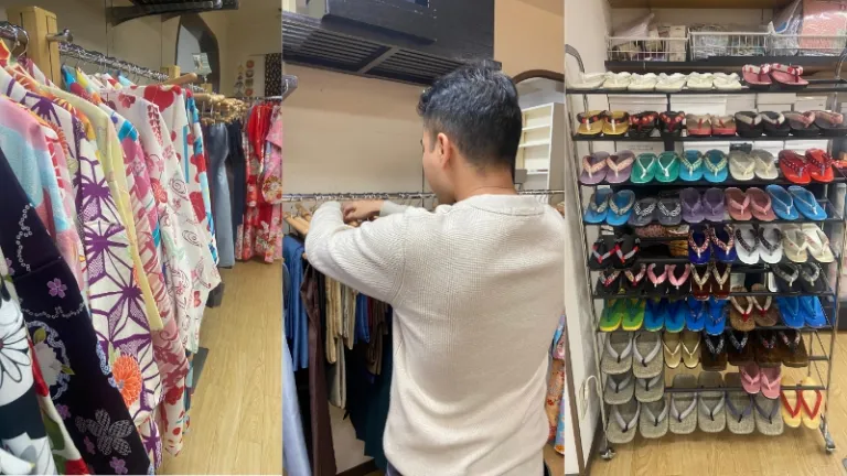 To better immerse ourselves in Japanese culture as we embarked on our Japanese onsen adventure, we decided to swap our modern cushy clothing for traditional Japanese attire. This brought us right outside the doors of Bachu Gofukuten, a store that offers rental service for hakama, traditional Japanese clothing.