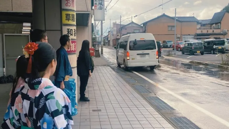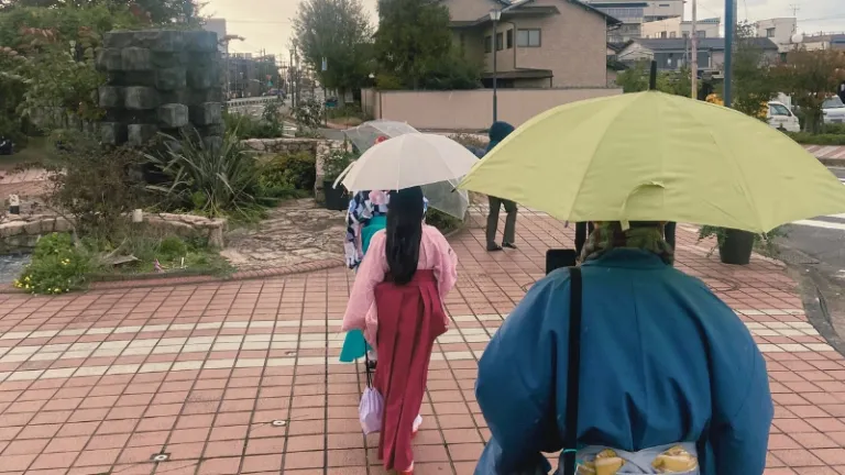Stepping outside the shop in our newly donned hakama, the air around us felt different from when we first entered it (though, I must mention that I was only wearing a t-shirt to keep me warm on the inside which was really not that sufficient). The cold breeze was relentless as it whipped through the gaping holes of my hakama. This signalled our first foray into the cultural expedition we were about to embark on to relish in the yumeguri culture of Awara Onsen.