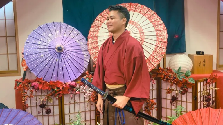 From wagasa — traditional Japanese umbrellas to a modest onsen water bowl, or a sleek katana, pick a prop and step into a world that blends Japan’s rich historical elegance and aesthetic beauty for a memorable hakama photoshoot. For our individual photoshoot, my travel buddies opted for the wagasa umbrella while I couldn’t resist the urge to wield the katana. Now, I think you know where I’m going with this.