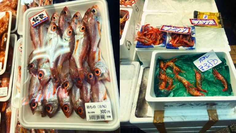 Aside from crabs, there are other kinds of seafood being sold which are popular delicacies during different seasons in Japan. For instance, yellowtail fish is widely consumed during the autumn and winter months, perch fish (Suzuki) is popular during the summer and autumn months, while Gasu shrimps (Rustling Sweet shrimp) are fantastic delicacies that are enjoyed from Sep to Jun (expect summer season).