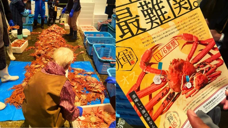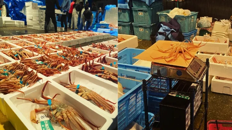 We had a candid conversation with a local seafood retailer who told us that fishmongers in Japan put much emphasis and attention on fresh seafood catches. This is done through bidding processes at fish auctions to ensure high-quality seafood in terms of freshness and flavour. Notably, Kobako-gani crabs (female snow crabs) are a gem among the winter delicacies sold around the market. Locals enjoy having them as a delicacy due to the delicious eggs stored in their sotoko (belly) and uchiko (shell), giving them a buttery and multi-dimensional flavour!