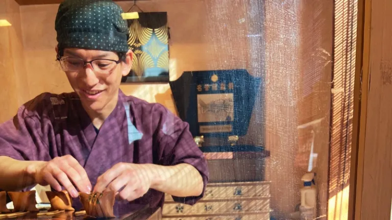 The following day, we visited Itaya Honten, a popular confectionery shop that went viral on YouTube and TikTok. This shop is famous for its wagashi called Komo-kaburi and is a testament to the region’s rich cultural heritage. This confectionery exemplifies the artistry and craftsmanship of Kanazawa’s confectioners, who have skillfully incorporated local traditions into a delicious treat.