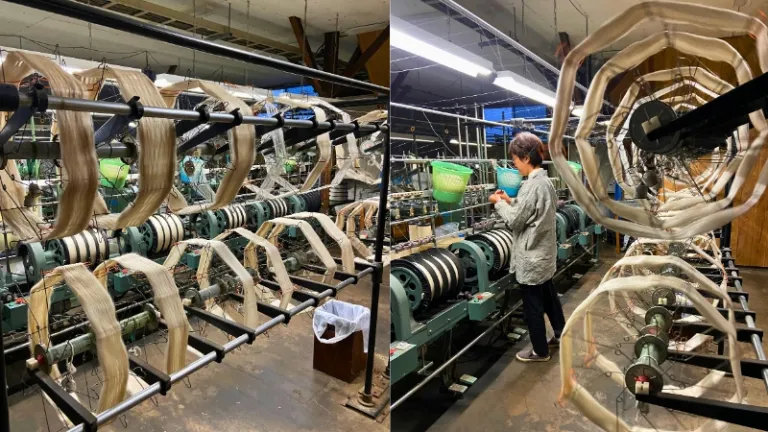 The family’s commitment to tradition is evident in their use of contemporary techniques and tools, such as the steam room, which was built 110 years ago, used to soften the woven silk fabric and for dyeing.