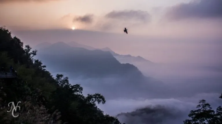 Amazing Alishan Sunsets with a bird soaring in the foreground