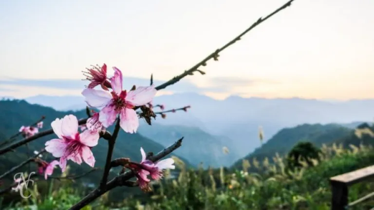 Cherry Blossoms, with Alishan sunrise in the background