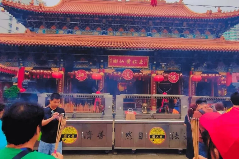 Finally, don’t miss out on taking a picture with the Golden Wall of Wong Tai Sin Temple. This stretch of metal panels is filled with intricate carvings that make up a grand mural depicting the life of Wong Tai Sin. Wong Tai Sin Temple is easily reached by taking the MTR, where you can get off at a station bearing the same name. After that, it’s just a short walk to the entrance.
