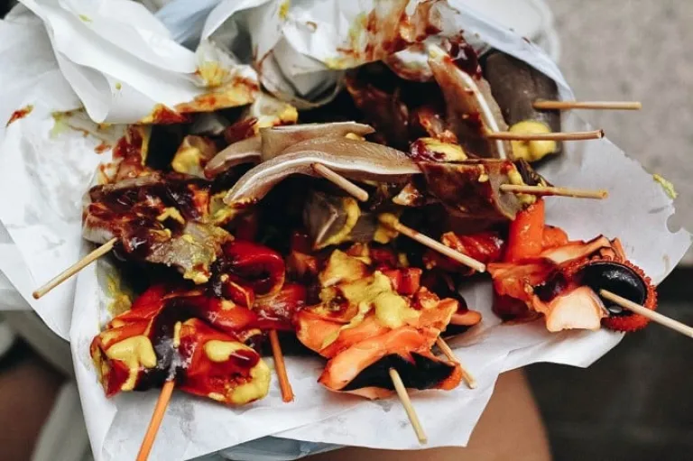 The best street food, in my opinion, should be as easy to eat as it is yummy. That’s exactly what Fat Boy gives you with their tasty skewers of soy-marinated beef tongue, octopus, gizzard, pig intestines, and duck stomach. Drizzled with spicy horseradish, that’s an offal-y delicious lineup of street food.