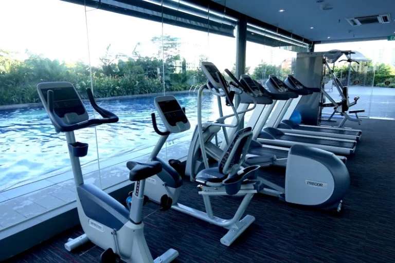 Gym facing the outdoor pool