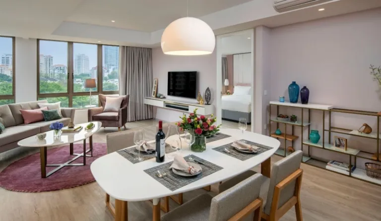 The Two-Bedroom Premier Suite provides families with luxurious space and is cleverly designed to include a king bed, twin beds, two bathrooms and separate cooking, dining and working areas. So if you’re looking for a home away from home without the hassle of household chores, this is your best bet! There’s plenty of space for bigger families to have a cosy movie night or bond over some card games.