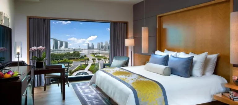 Towering high above the Marina Bay district is none other than the Marina Bay Sands hotel, one of Singapore’s most iconic landmarks. This world-renowned establishment offers expansive rooms that will provide you the optimum tranquil for your stay. Every single room in this gargantuan building offers a bird’s eye view of the kaleidoscopic Central Business District!