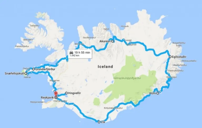 The Ring Road covers around 2500km, including all the detours for attractions along the way. This amount will increase significantly if you plan to cover North-East Iceland, specifically Ísafjörður. Route 1 is the main highway to be on for this round island drive. South Iceland is notorious for sand storms and