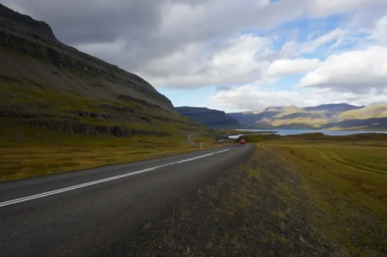 The fantastic driving scene through the eastern fjords starts shortly after leaving Hofn. The number of cars and people reduce drastically as you continue eastwards because most people would have u-turned back to Reykjavik.