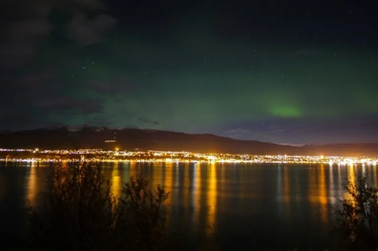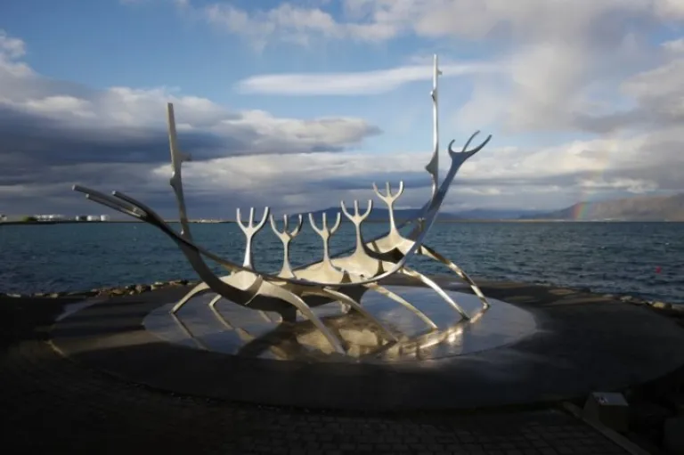 The Sun Voyager is a good place to take pictures of the aurora borealis because the icon serves as a good foreground.