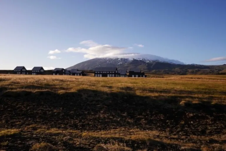 Hotel Hellnar with Snæfellsjökull Glacier in the background