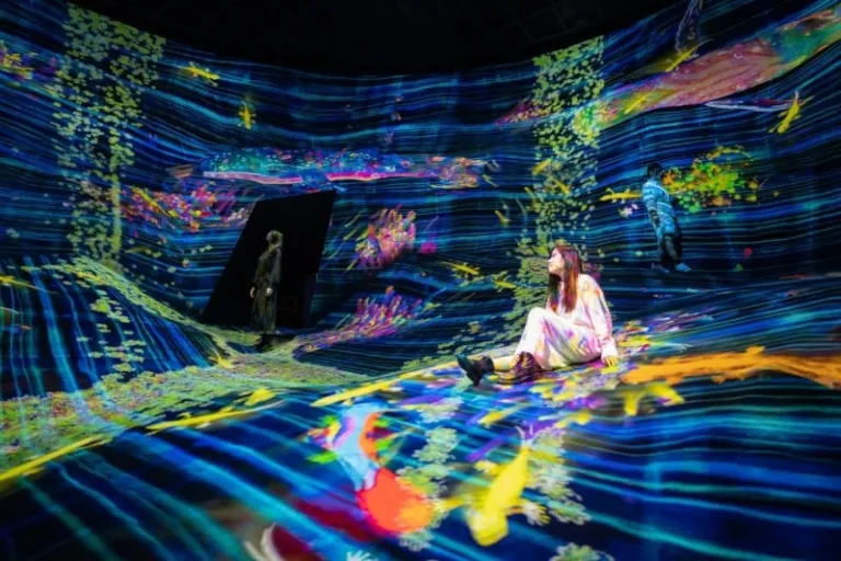 One highlight, We Live in an Ocean of Air, lets visitors explore a virtual forest, breathe with the trees, and interact with natural elements digitally. This experience recreates the calming effect of forest bathing even in an urban setting. Other installations range from meditative VR journeys to playful, interactive digital realms. For those seeking an immersive escape without leaving the city, the museum blends technology, art, and nature into a seamless experience.
