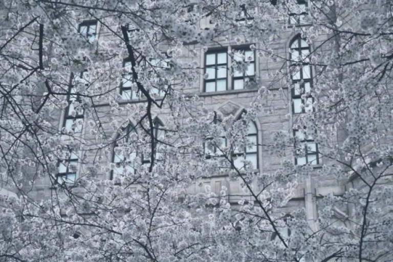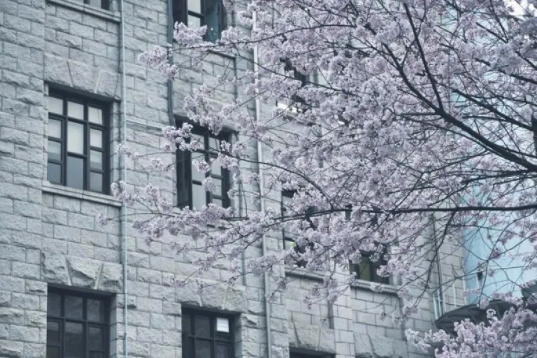 A university might not be the first place you’d think of going to, but there is something about the architecture at Kyunghee University that lends enchantment to the cherry blossoms.