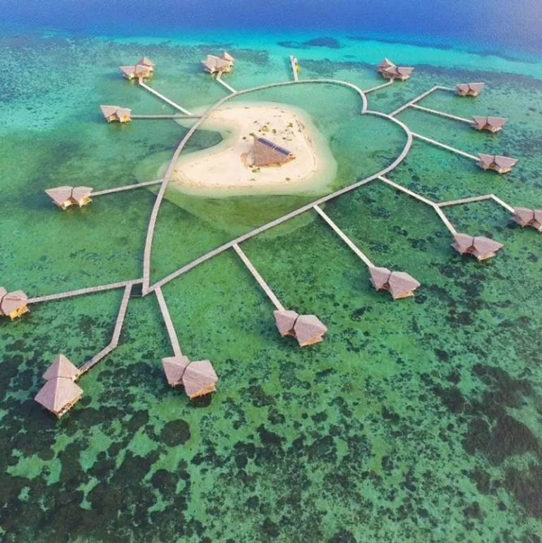Shaped like a heart, the is the ultimate romantic destination and is located in Boalemo, Gorontalo, North Sulawesi. With villas that sit above crystal clear waters, you and your other half can spend many hours just getting cosy and admiring the teeming aquatic life. The resort operates on 100% solar energy and even has a built-in audio system. Queue your Frank Sinatra playlist as you prepare to dine and wine with your other half in a romantic candlelight dinner.