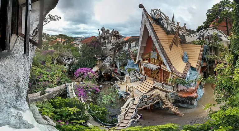 Formally known as The Hang Nga Villa, architect and owner Dr. Dang Viet Nga built this hotel with the idea of making people fall in love with nature. Located in Da Lat, his design involved the coordination between slabs of stones and hollow stumps to keep the house nice and warm from the cold surrounding temperatures. A beautiful and peaceful landscape that you must check out!