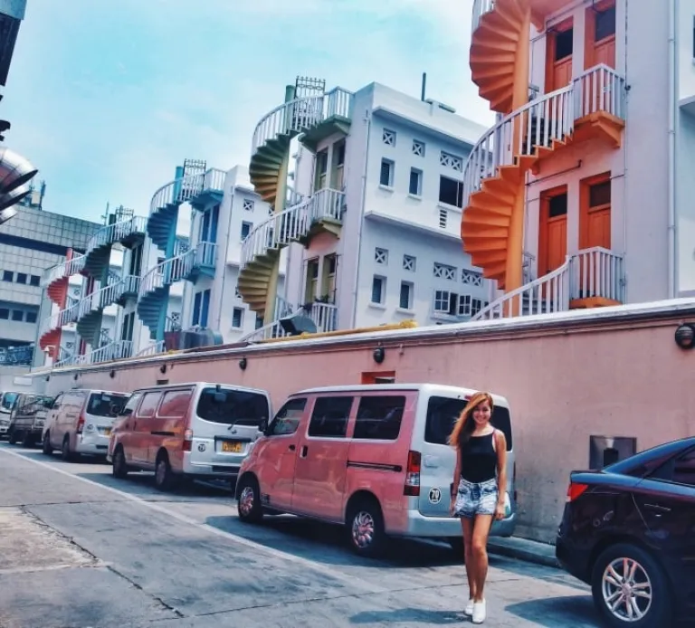 These pastel spiral staircases belong to the backs of narrow shophouses in Bugis village at 233 Victoria Street.