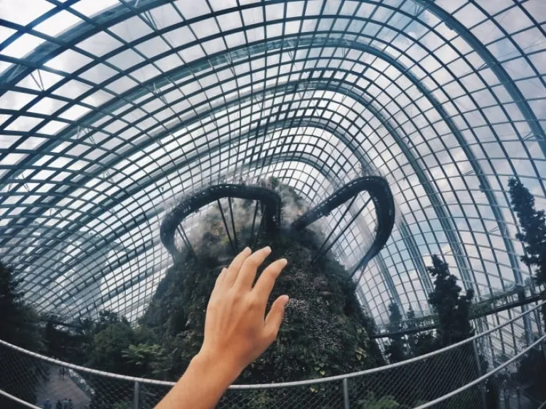 The , equally popular with the in Gardens by the Bay, is a mysterious world veiled in mist with the world’s tallest indoor waterfall. You can actually take a stroll in that walkway for an aerial view of the mountainside below.