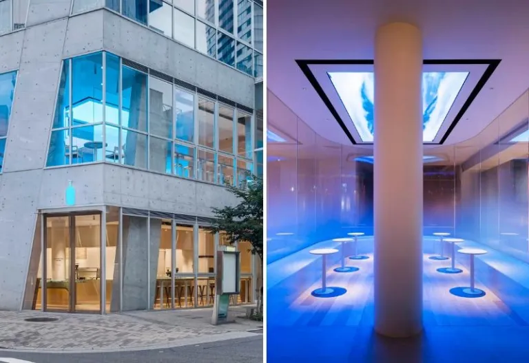 Designed by Tokyo-based design studio I IN, Blue Bottle’s Umeda Chayamachi branch features an innovative and futuristic space, creating an elevated coffee experience for patrons. While its overall aesthetic is minimalist, some elements make it stand out from other cafes in Osaka: two levels with floor-to-ceiling windows and a virtual skylight that features digital art. But of course, at its core, this case is all about coffee! Indulge your favourite Blue Bottle coffee creations in a unique space that transcends your typical coffee break.