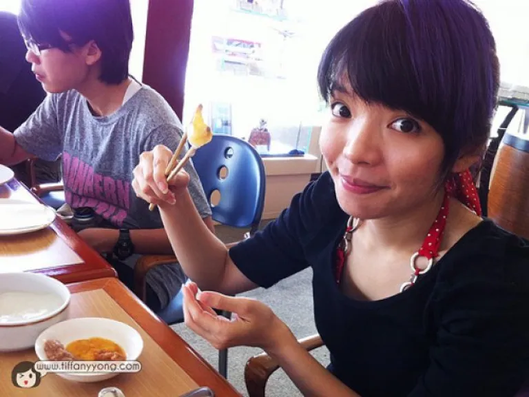 To enjoy ambuyat, roll the starch around the prongs and dip it into different kinds of sauces. It tastes like the softer version of muah chee! Most of the bloggers find this dish weird, but I like it, especially when dipped in sugar. The original sauces include chilli, sambal, belachan and mango chilli, which I find too strong and spicy for my liking.