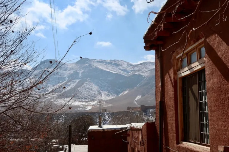 Snow-dusted mountains in the village of Abyaneh.