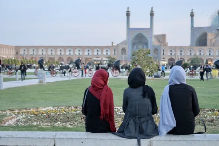 Ladies in colourful hijab and manteau in Naqsh-e Jahan Square, Isfahan.