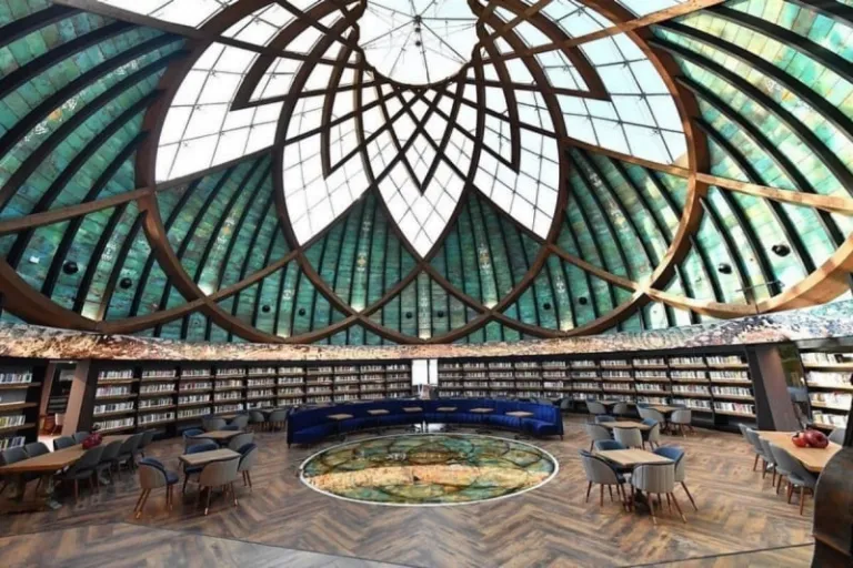 The building may not look like much from the outside. But when you enter, get ready to be greeted by a cosy space unlike any other. Book-filled shelves line the walls, restaurant tables overlook the water, and the ceiling features a massive lotus pattern; all of which instantly make Nevmekan Sahil quite Instagrammable!