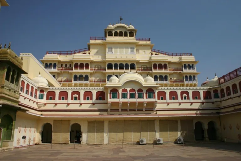 Mubarak Mahal is the only building inside City Palace that has Indo-Saracenic architecture. It serves as the welcoming committee for tourists as they enter the City Palace. Back in the day, this used to be a reception hall for foreign dignitaries. Now, it houses the Maharaja Sawai Man Singh II Museum, which showcases royal family artefacts. It has a massive courtyard, spacious rooms, and intricate gold-trimmed murals adorning its halls.