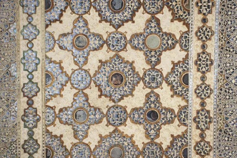 Inside the buildings, the opulence of marble fixtures, coloured glasses, and glittering mirror mosaics will take your breath away. The crowning glory is the Sheesh Mahal, also called ‘The Mirror Palace’ which houses the intricate Magic Flower. Carved on the base of a pillar, this marble panel features seven unique designs: a lion’s tail, hooded cobra, lotus, elephant, trunk, scorpion, corncob, and fishtail.