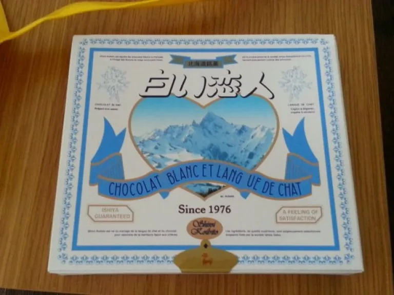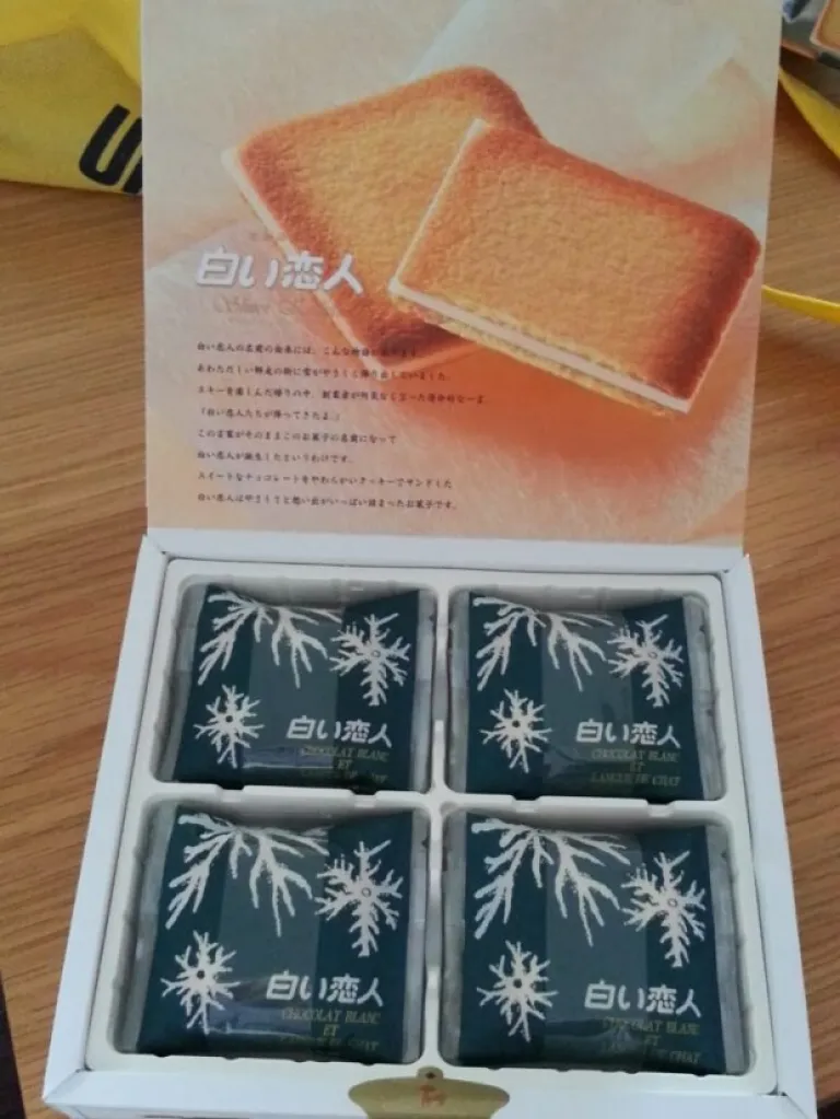 Shiroi Koibito in English, or at least on the package, says White Lover. Literally. I’ve been calling them the White Lover Cookies. I think the White, stands for white chocolate. Shiroi Koibito is basically a square cookie sandwich with 2 very thin crispy cookies with a slice of soft white chocolate in between. The white chocolate kind of looks like cheese.