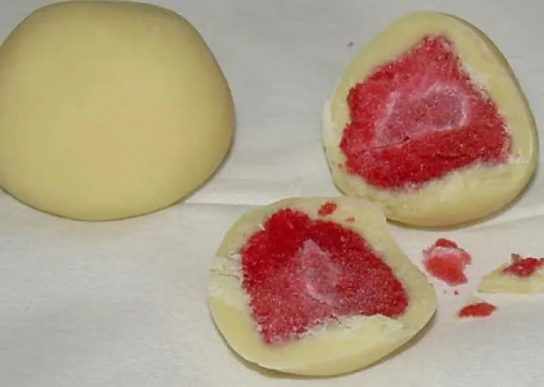 White choco ball with strawberry inside