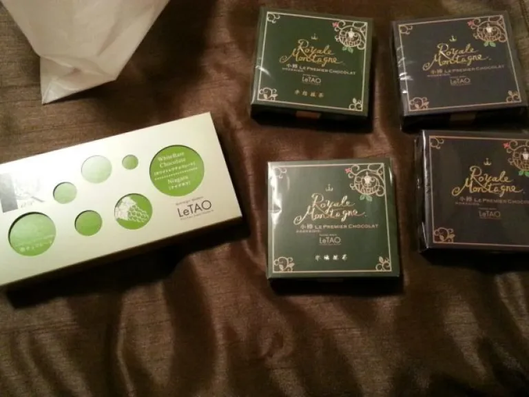 On Left: LeTao white rare chocolate. Middle: Green Tea chocolate. Right: Milk Chocolate