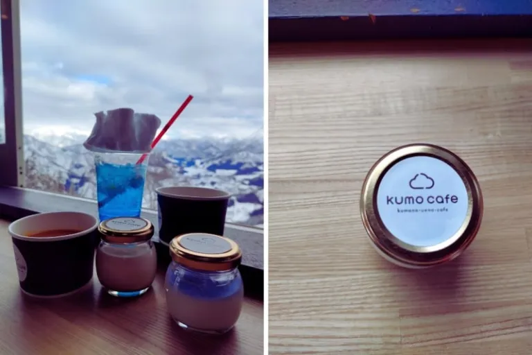 The ski lift glided to a smooth stop, and I found myself in a little annex with the peak of the mountain awaiting beyond. Here, we stopped for a bite to eat at Kumo Cafe. There was plenty to try, like edamame soup, pudding, panna cotta, and a fun beverage themed after the ski slopes. The spread was delicious, and exactly what I needed before heading back out into the cold. If the Yuzawa Kogen Ski Resort is part of your Niigata itinerary, I’d recommend visiting Kumo Cafe too.