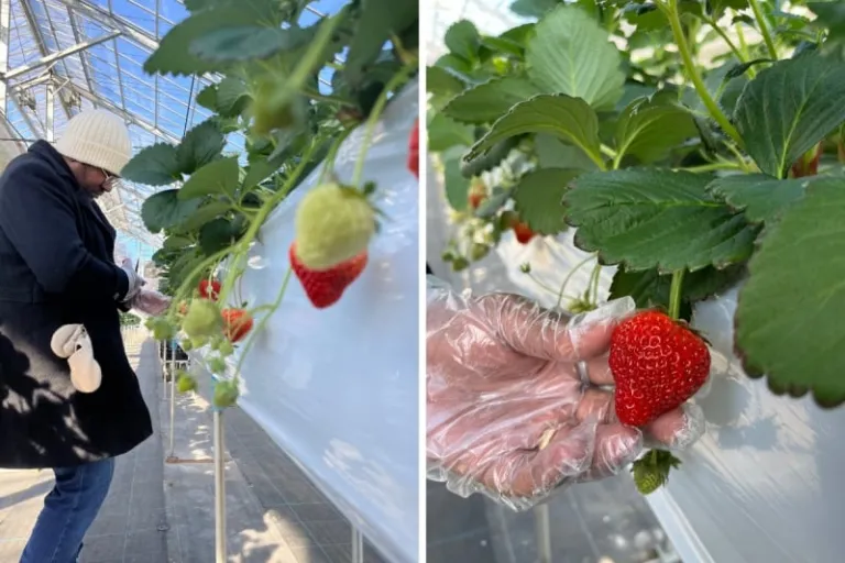 Our next destination on my Niigata itinerary was the Yuzawa Strawberry Village. This charming little strawberry farm is just 15 minutes from Echigo Yuzawa Station on foot, and only five minutes if you’re driving. The strawberries are grown in small greenhouses nestled in the snow.