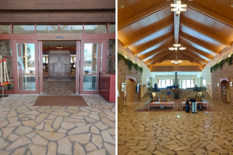Beyond the window, I could see the unique architecture of the Belnatio’s in-house chapel and event space, surrounded by a snowy landscape.