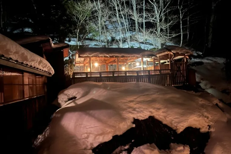 Before dinner was served, I took an opportunity to enjoy another Yukimi-buro onsen experience in the snow. The onsen water seemed denser and was laced with the faint scent of sulfur and minerals. Soaking in that water helped fire up my appetite, and I was ready to take on any delectable treats that the inn could dish out.