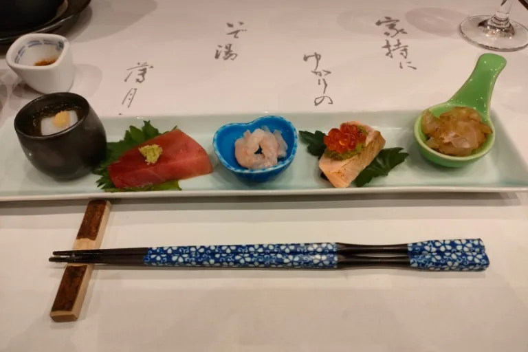 Fortunately, there were plenty to enjoy. A variety of dishes were served ranging from fresh sashimi and sweet sasadango (rice dumplings) to fragrant kuromoji tea.