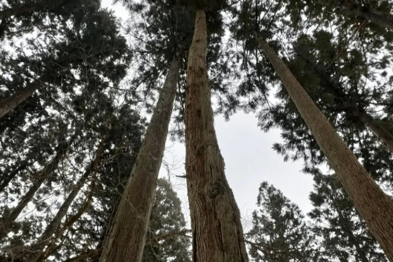 Snowshoes on and walking sticks in hand, we were given a quick tutorial on navigating the snow by our guide. At the forest entrance, our guide pointed out two enormous Japanese cedar trees, which were roughly 200 years of age. He explained that cedar was a prized material in building traditional Japanese homes, used for the framework and the supporting beams in ceilings.