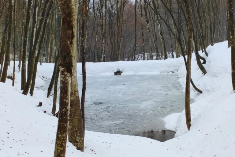 We also came across a semi-frozen pond in the middle of the water, filled with icy cold water from the surrounding snowmelt. According to our guide, a special channel runs from the pond in the forest, taking fresh water down the hills to homes and farms in the lowlands.