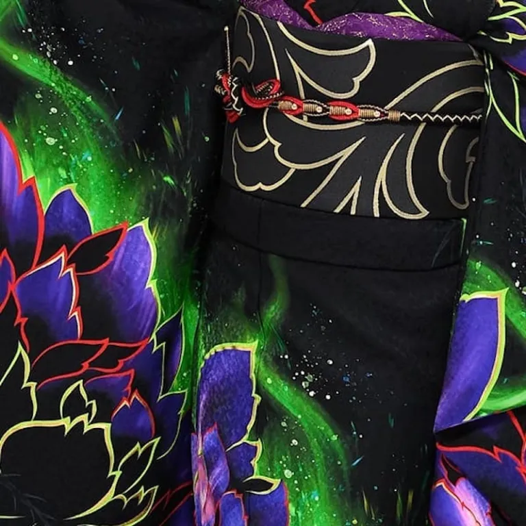 Maleficent doesn’t need any introduction. When you see the acidic colours of her magical flames — the green, purple, and black — you can be sure she’s about to make an appearance. The overgrown flowers on this Disney-themed kimono adds that intimidating effect that only Maleficent can embody.
