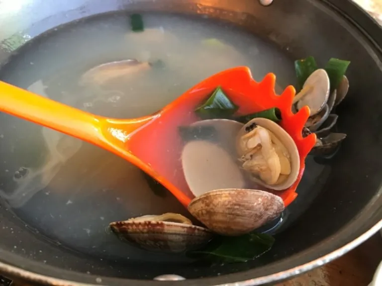 Do not be deceived by this simple-looking clear clam soup. It tasted so heavenly that I polished it off.