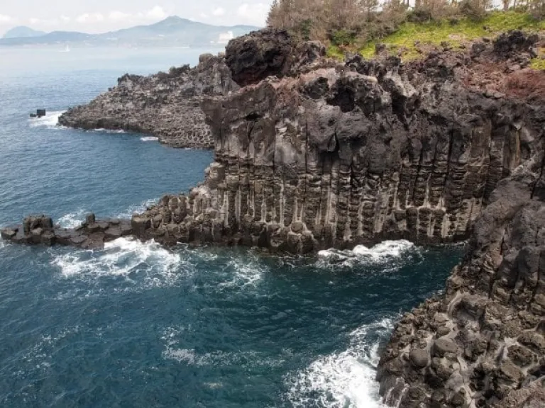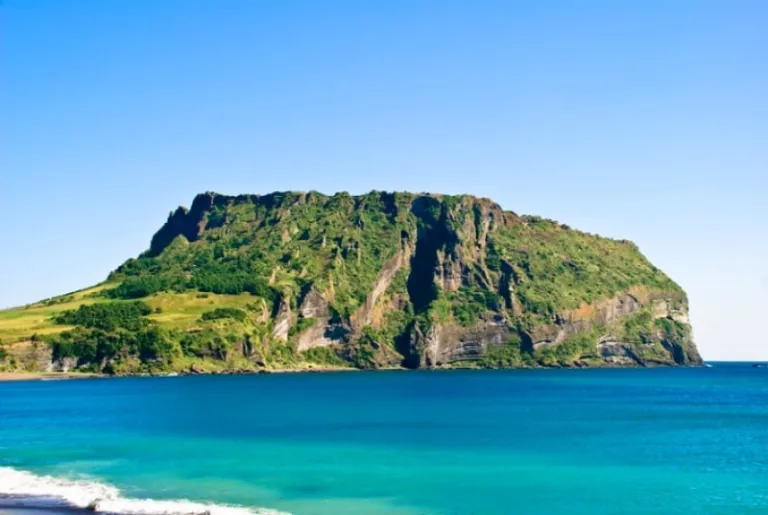 The only waterfall in Asia to plunge directly into the ocean, is probably the most famous waterfall to visit on Jeju Island. Clear blue waters, verdant foliage, and craggy cliff walls create one of the prettiest vistas in all of Jeju. The wall of the 23-metre cascade is inscribed with the words “Seobulgwacha,” which refers to Seobul, a servant of the Chinese Emperor Jin. Legend says Seobul passed by this very spot and left his name on the cliff wall on his way to Mount Hallasan.