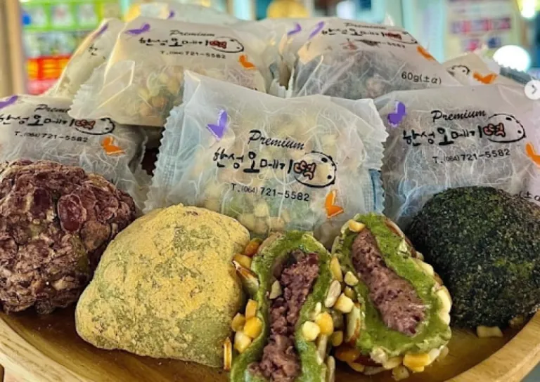 Got some room for dessert? The perfect way to cut that Jeju barbeque grease is to bite into omegi rice cake. It’s a scrumptious rice cake crafted from glutinous millet cultivated in Jeju, combined with red beans, various legumes, and nuts. Grab a few at Hanseong Omegi Tteok, a local hotspot close to the airport.