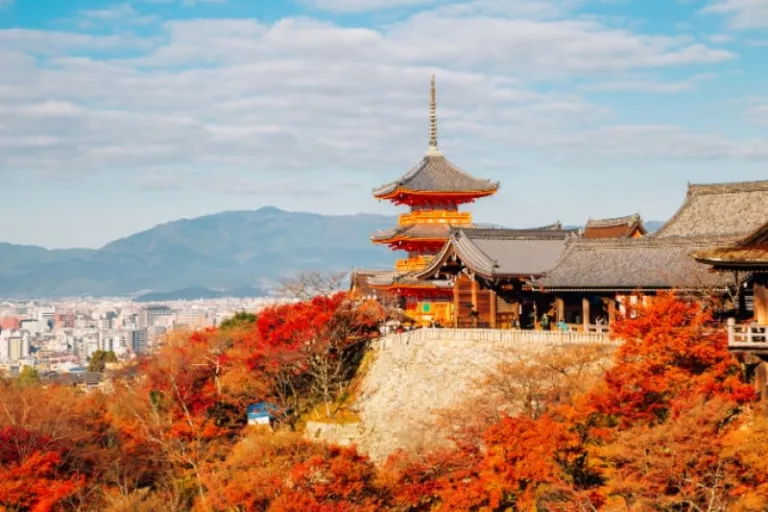 If you’re exploring must-visit spots in Kyoto, Kiyomizudera Temple is likely at the top of your list. Known for its sweeping views and striking architecture, this UNESCO World Heritage Site is a favourite among visitors who flock to the famous wooden stage, which juts out over a hillside, offering panoramic vistas of Kyoto. It’s an ideal spot for capturing the essence of Kyoto’s cultural and natural beauty– making it one of the city’s most Instagrammable landmarks.