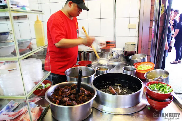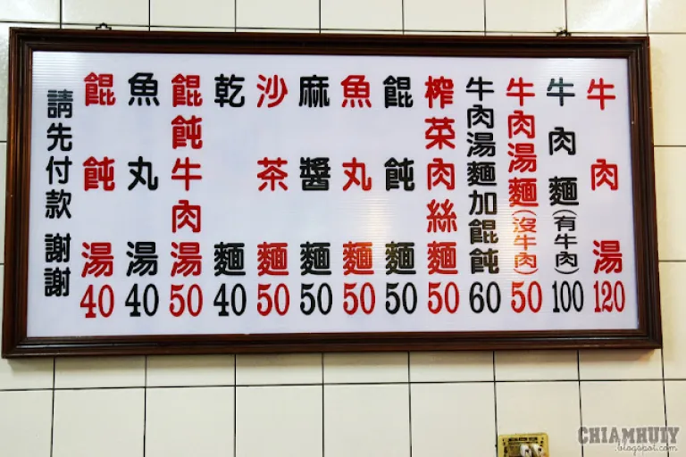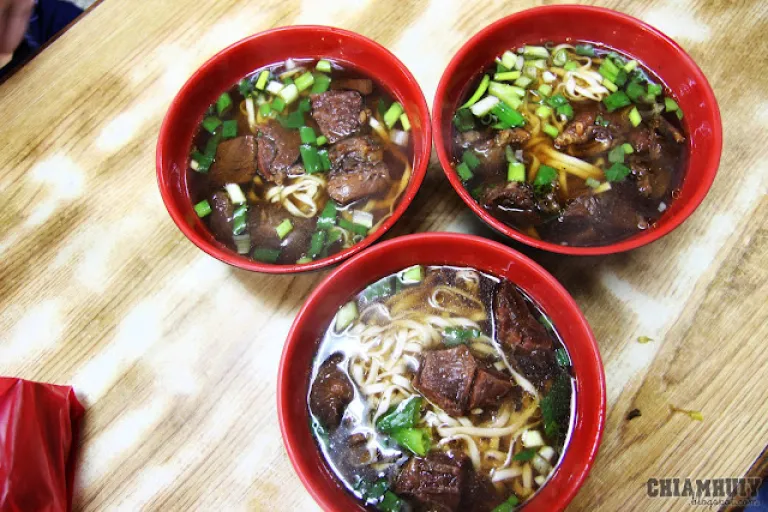 A bowl of beef noodles 牛肉面 cost NT100, about S$4.