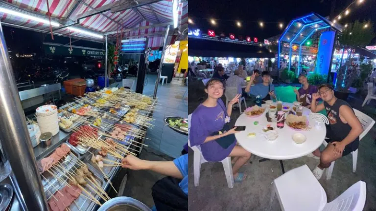 The whole area was lit up with colorful lights, creating a vibrant street-food atmosphere. The open-air setting made it a great spot to sit back, relax, and enjoy quality time with friends, soaking in the night market vibes that truly made it feel like an overseas getaway.