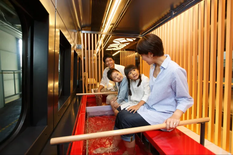 Looking for a more immersive regional experience onboard a shinkansen (bullet train)? Then soak yourself in the elegant ambience of the Toreiyu Tsubasa, as wide birch tables, spacious tatami mat seatings and local fruit motifs create a lush setting reminiscent of an onsen town. And just like you would at any of Japan’s famous hot springs, dip your tired feet into warm waters at a relaxing foot bath on board the Toreiyu Tsubasa.