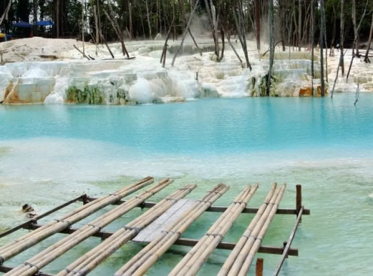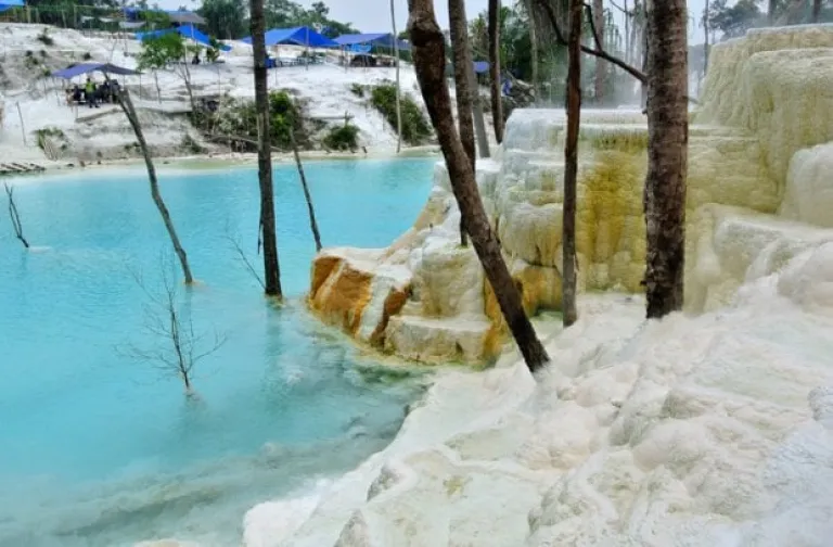 At a glance, Kawah Putih Tinggi Raja resembles the natural rock pools of Pamukkale, Turkey. “Kawah Putih” literally translates to “white crater” in Indonesian, and it is one of North Sumatra’s best kept secrets. Found in the village of Tinggi Raja in the Simalungun province, Kawah Putih is a natural hot spring that has hardened to form white terraces rich in calcium carbonate deposits.